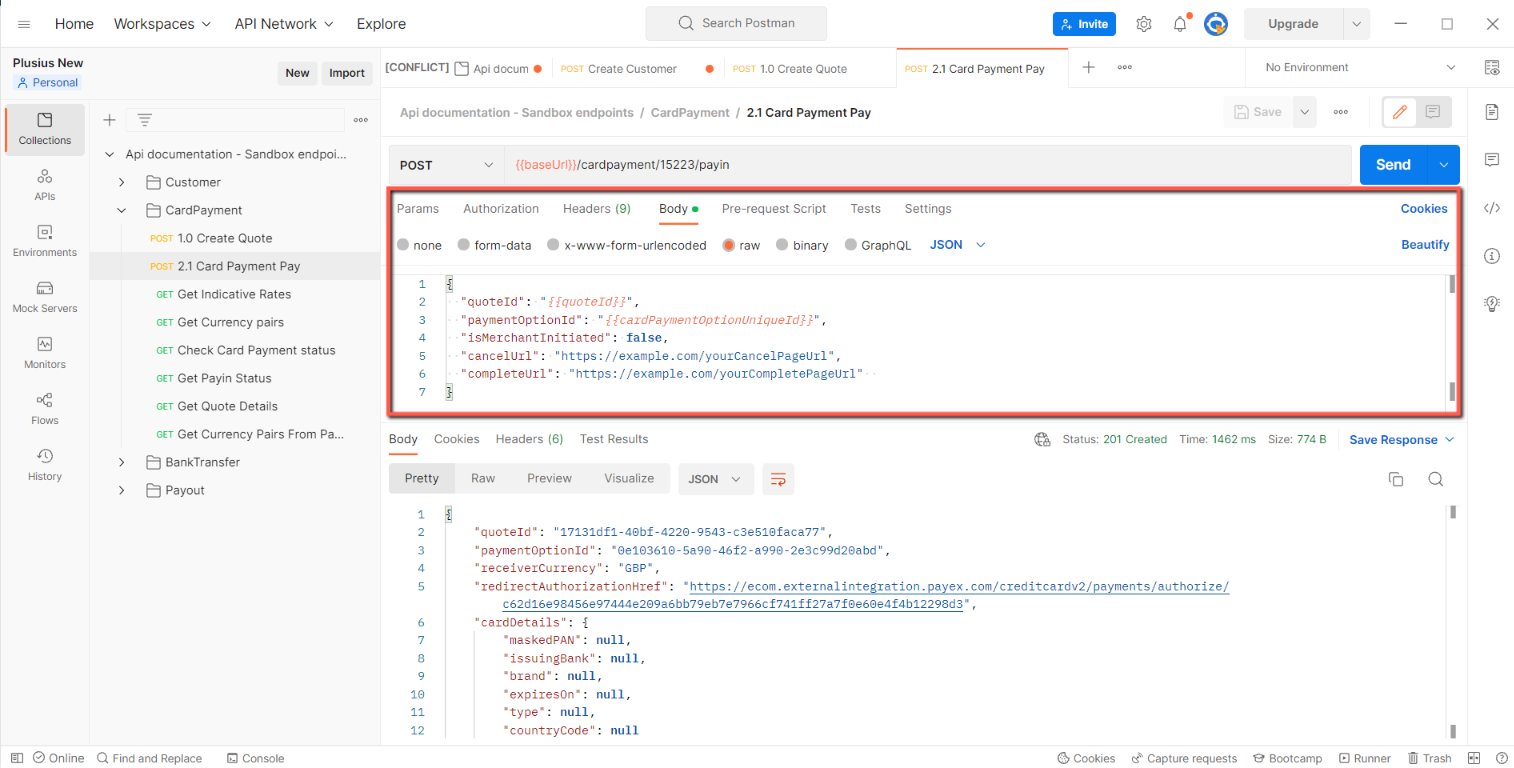 7. With a uniqueQuoteId and selected paymentOptionId we can initiate card payment.